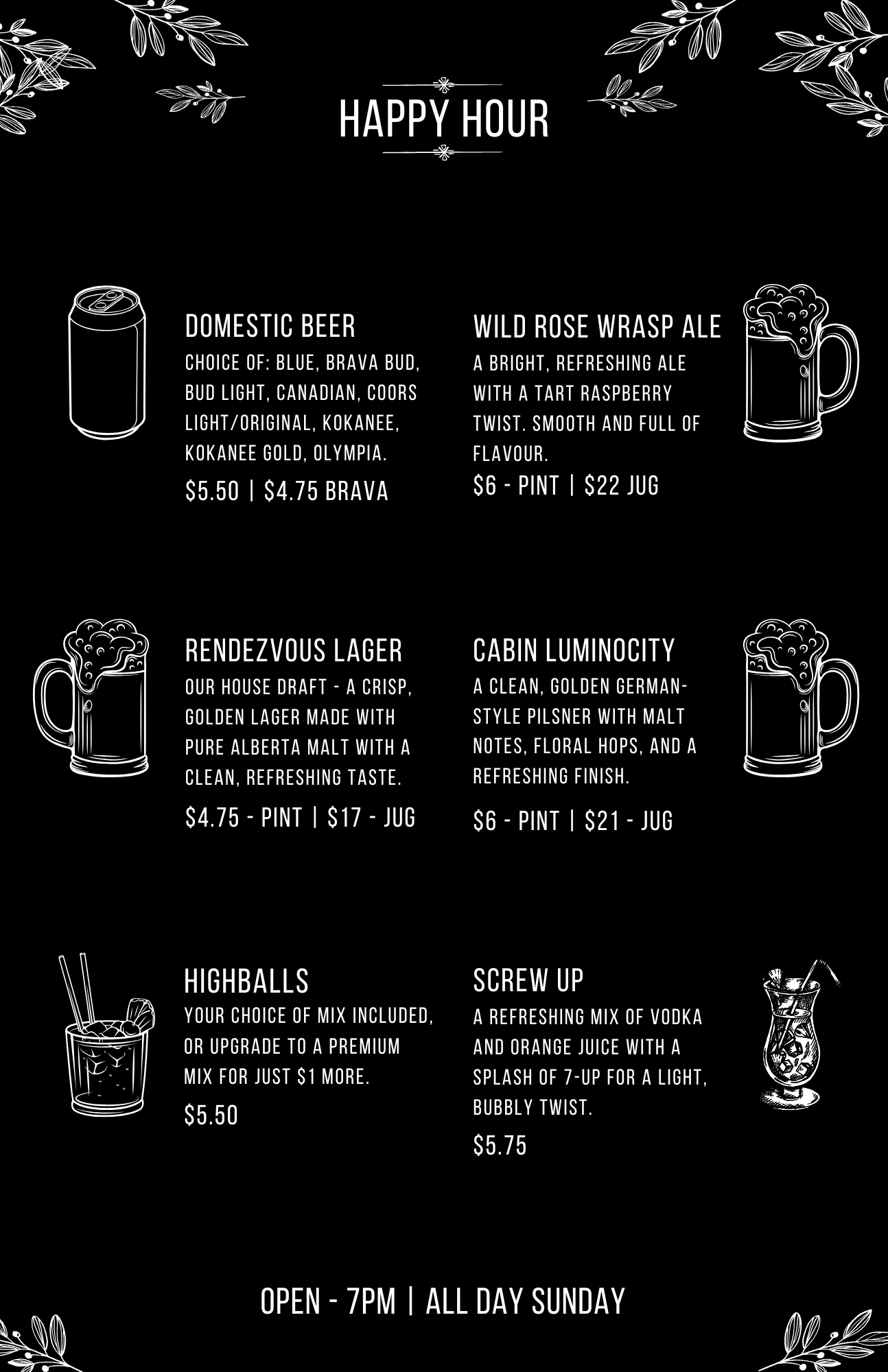 Fish & Chips - 25% OFF FRIDAYS Fillet of fish dipped in our house-made batter and fried to golden perfection. Served with tartar sauce and a side of fries. Sub Onion Rings +$2 | Sub Poutine +$4 | 19.95 |